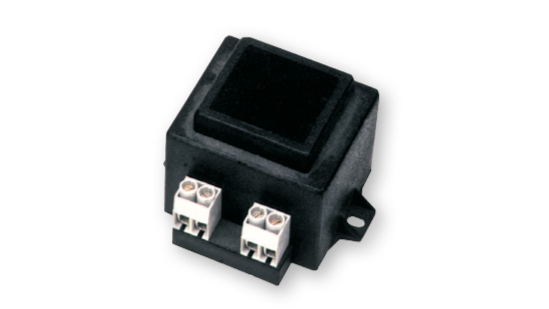 “Com revestimento de resina e caixa de plástico com abas de fixação e régua de terminais de parafuso para condutores ≤4mm².